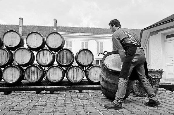 Rangement des fûts dans la cour du Champagne Bollinger à Aÿ-Champagne.